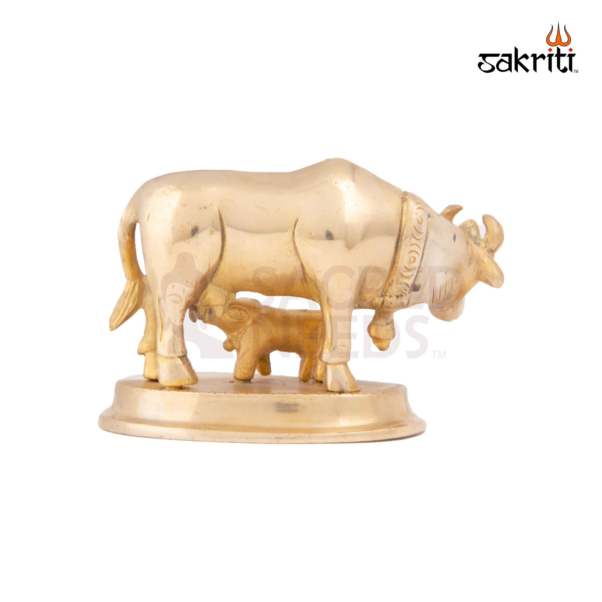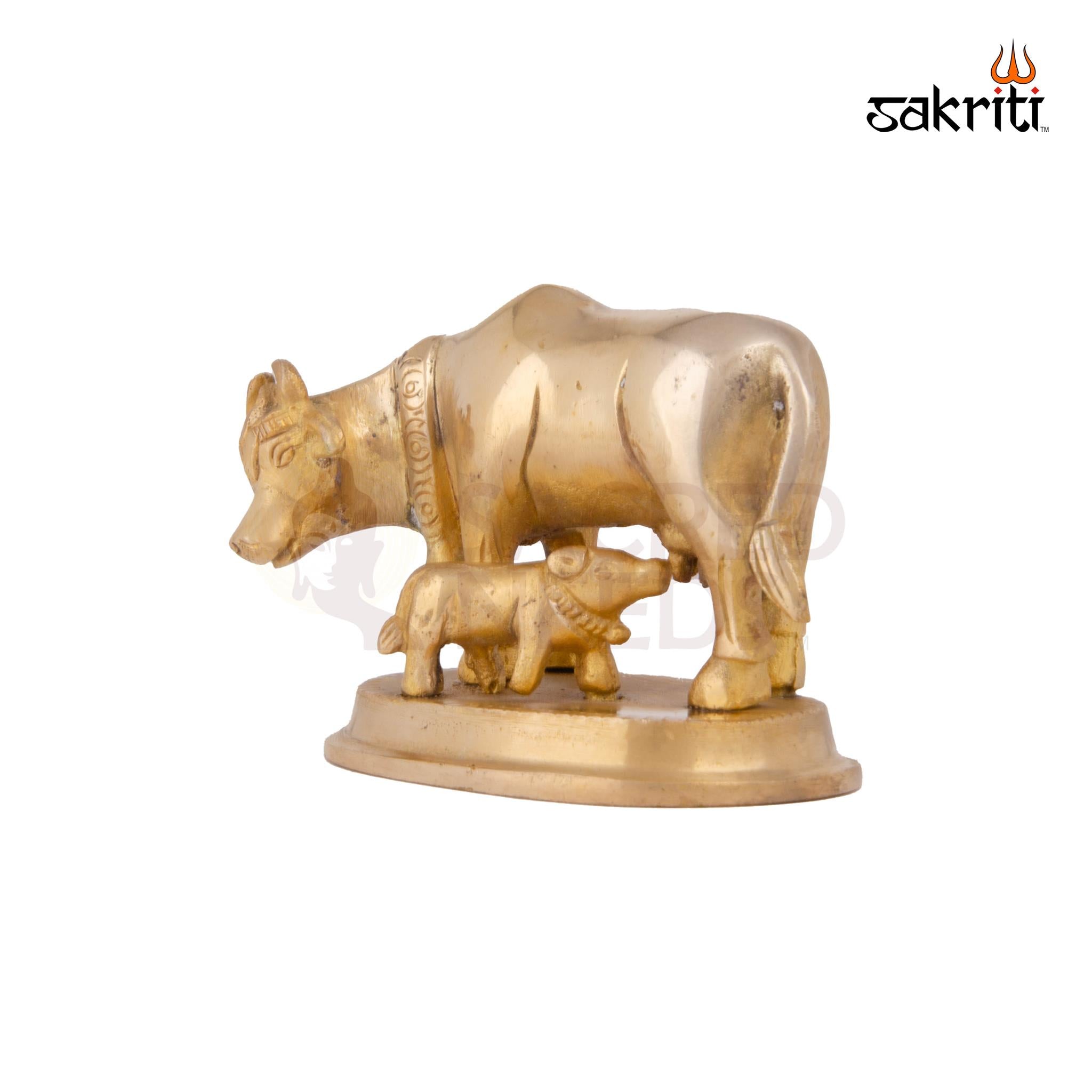 The Brass Cow & Calf – 2.8 Inch idol represents Kamadhenu, the sacred wish-fulfilling cow in Hindu tradition. Crafted from premium brass, this idol features the holy cow with its calf, symbolizing nurturing, abundance, and divine blessings.