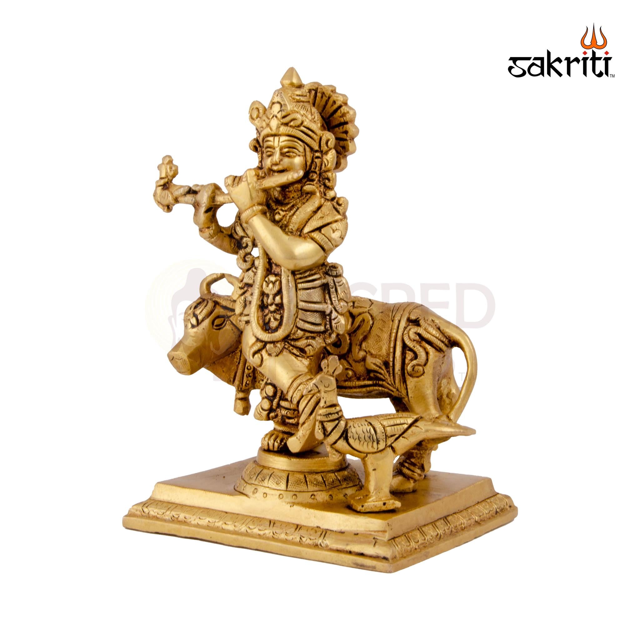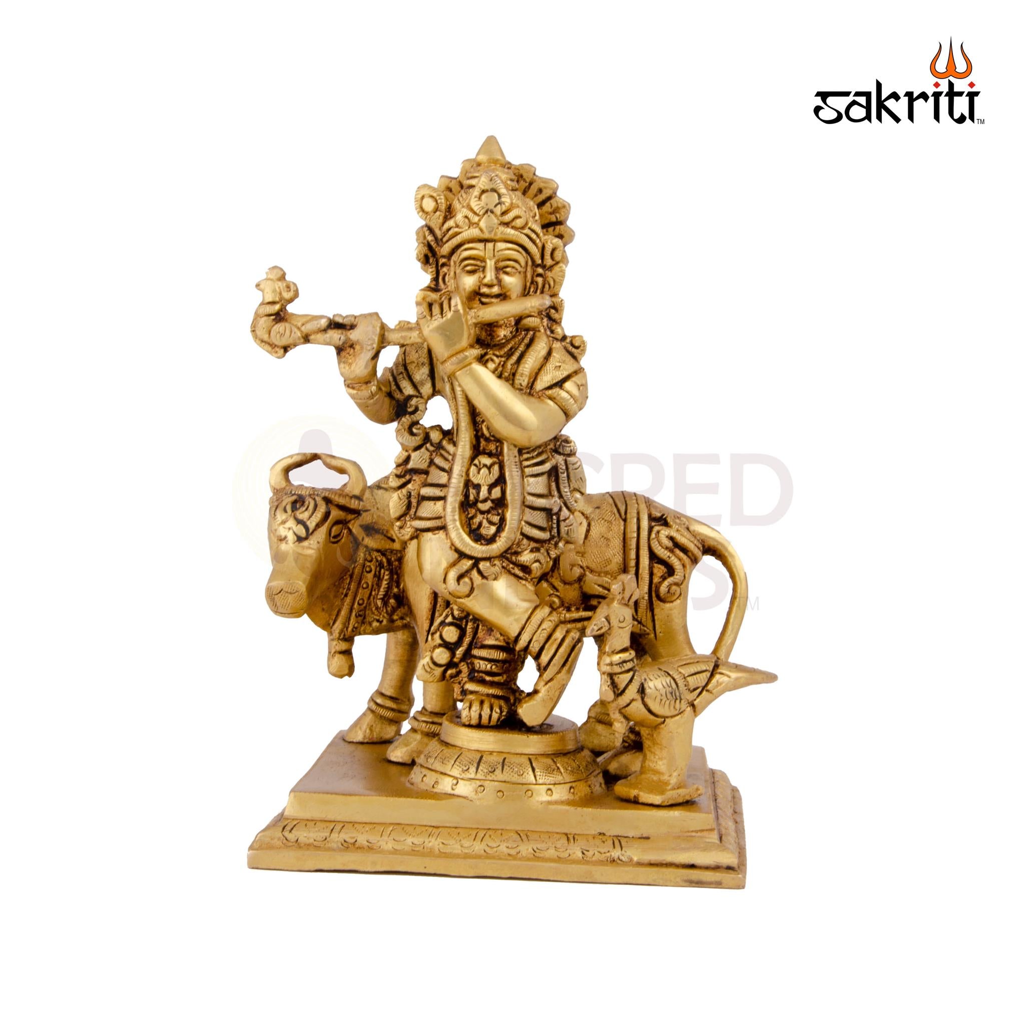 Design: Features Lord Krishna standing gracefully with cow, symbolizing divinity and compassion