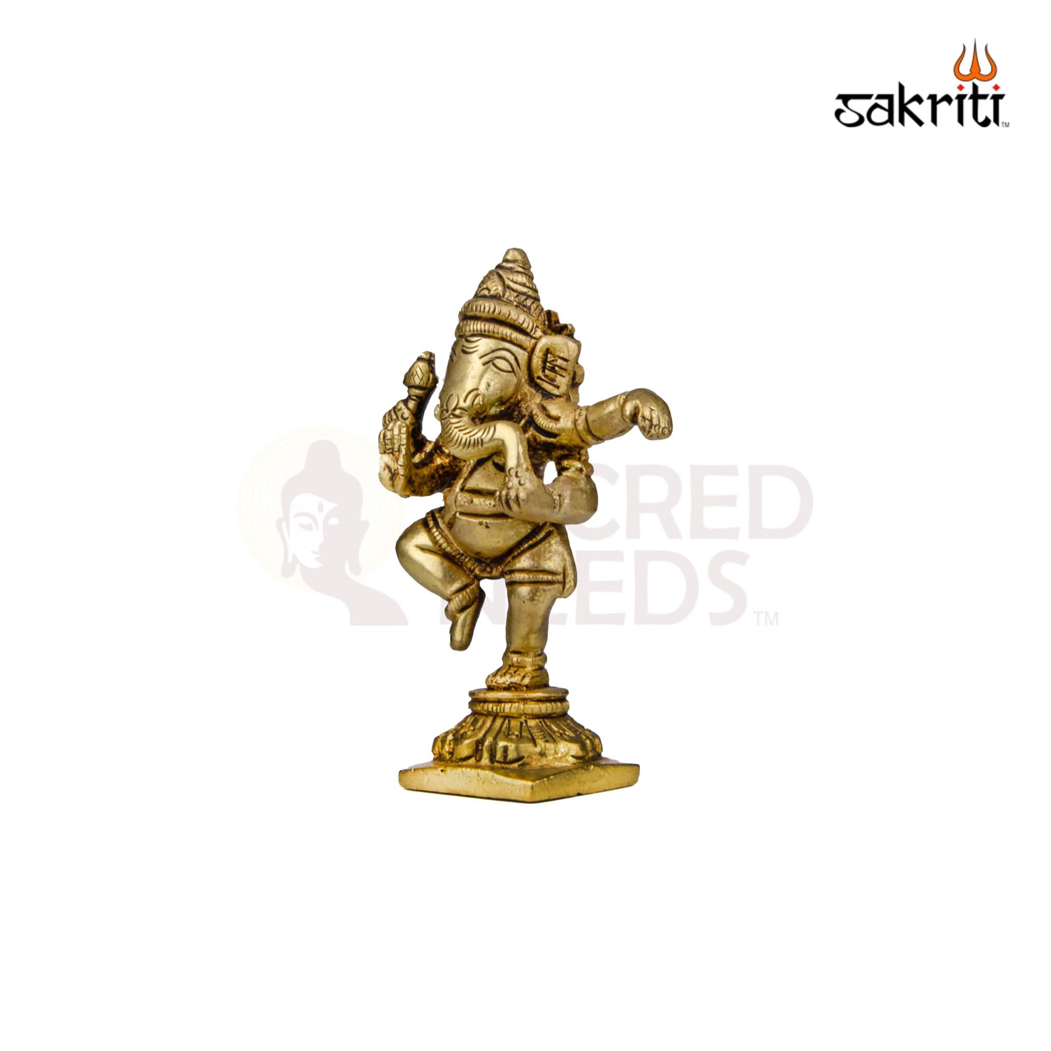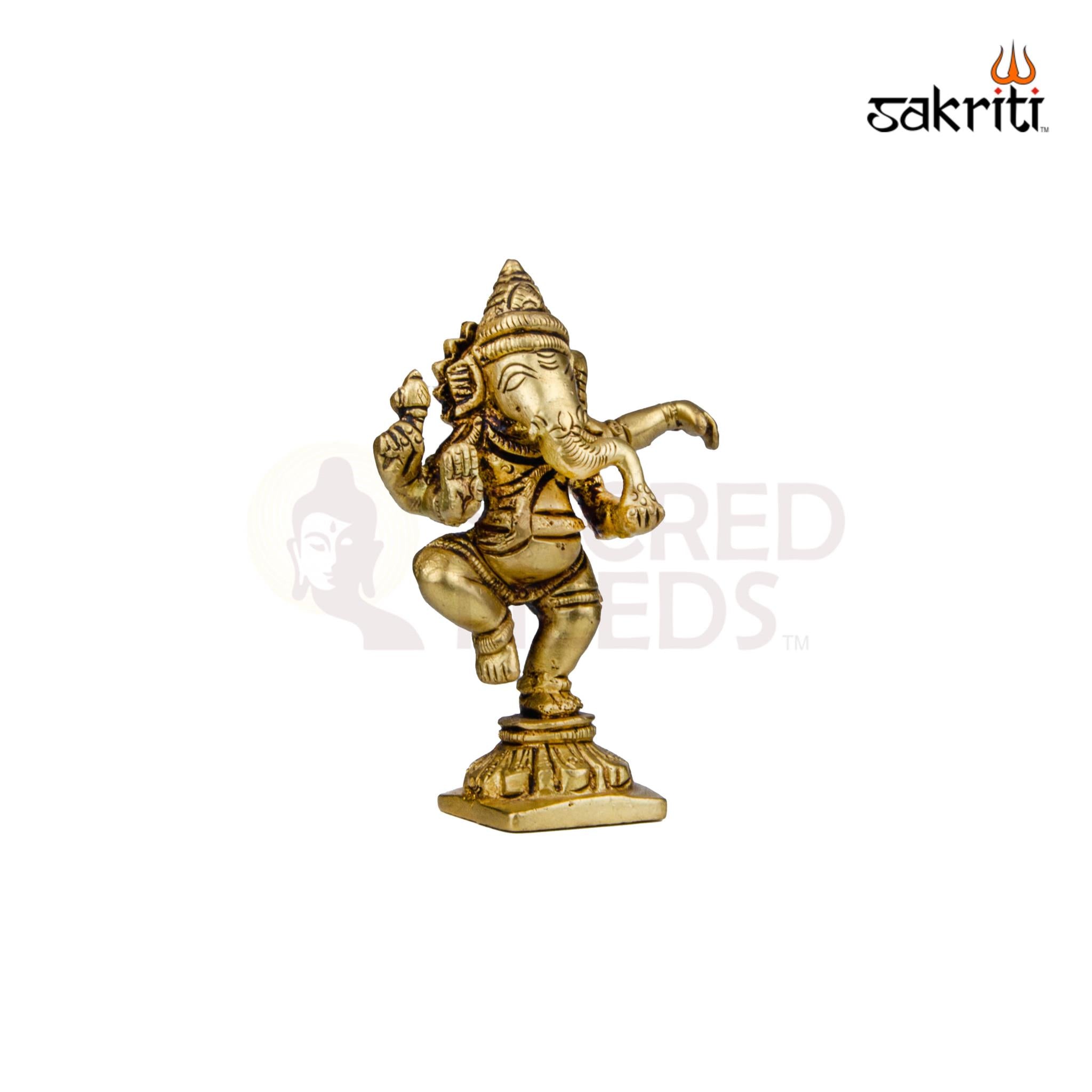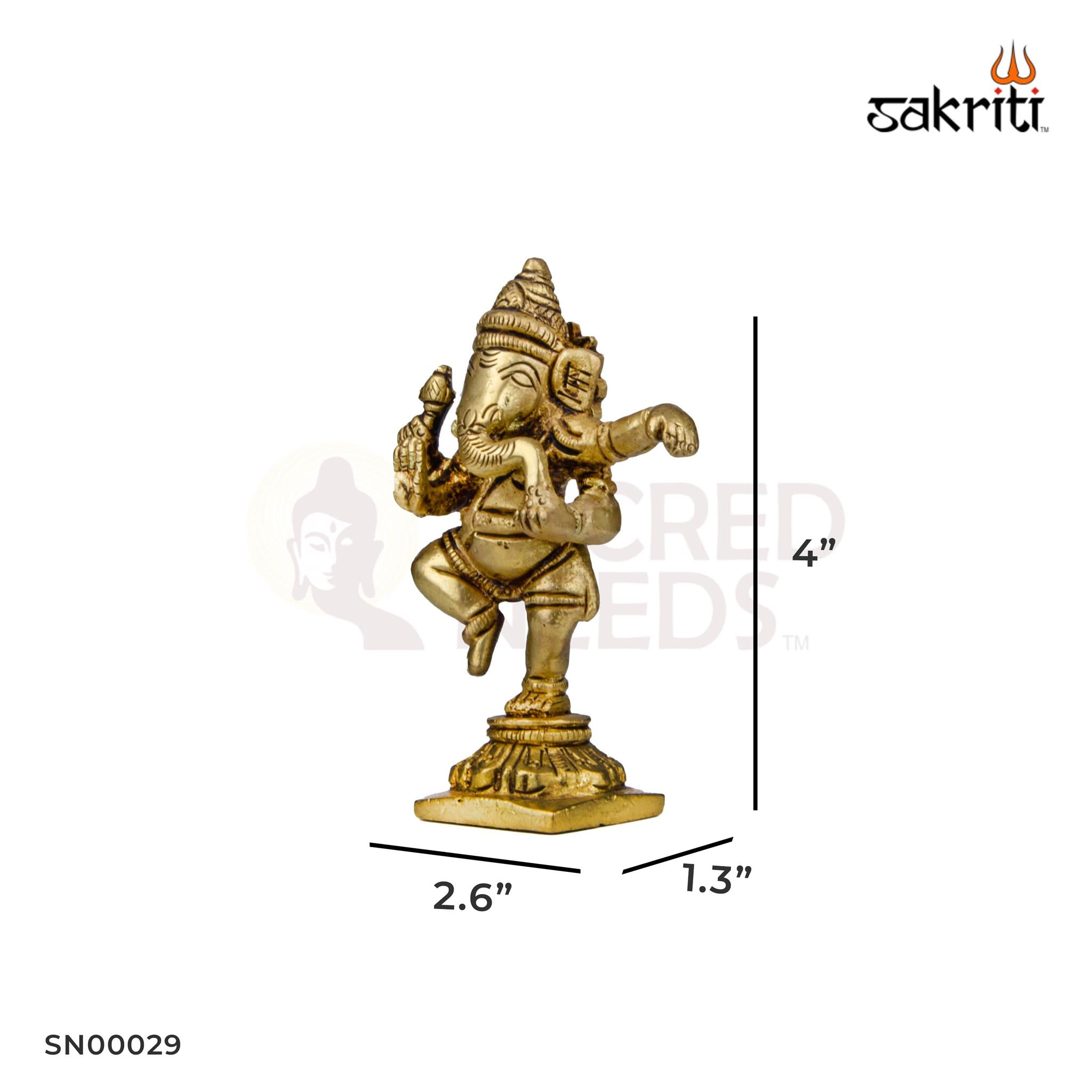 Vibrant Brass Dancing Ganesha Idol (4 Inch Height) – a beautifully crafted Nataraja Vinayaka statue ideal for pooja, festive décor, and spiritual gifting.