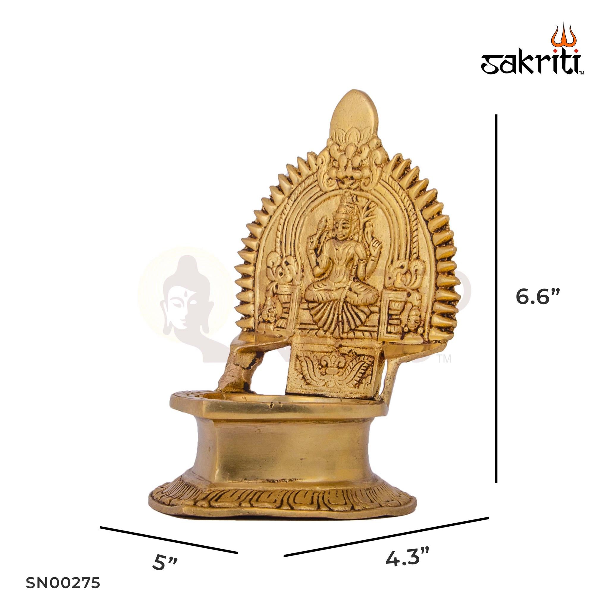 Light up your home temple with this Brass Kamakshi Vilakku (6.6 Inch). A traditional South Indian brass diya, it is perfect for pooja rituals, festive occasions, and daily worship, symbolizing purity, devotion, and prosperity.