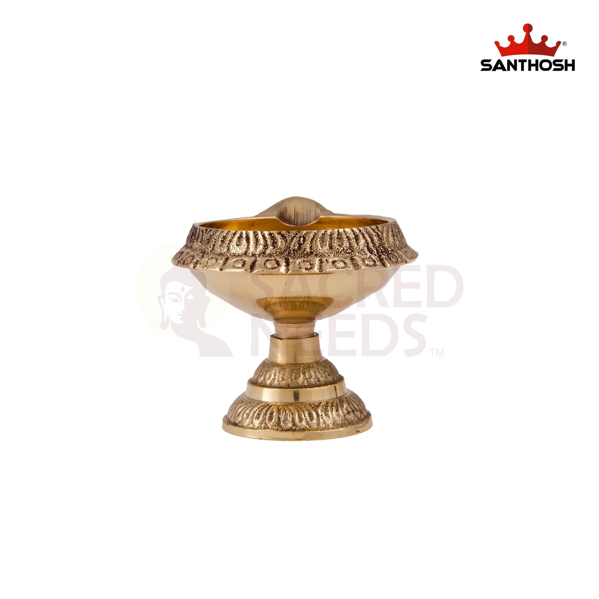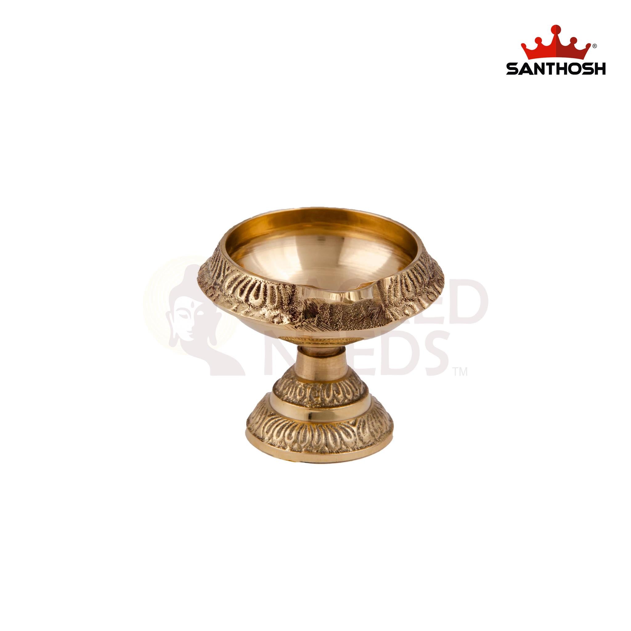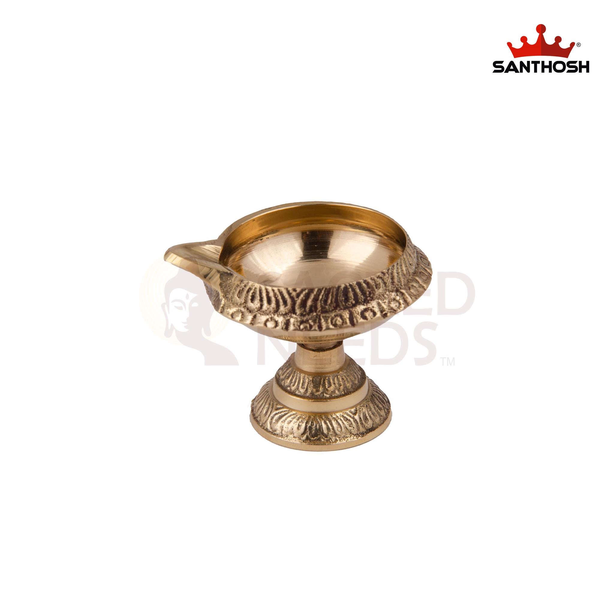 Its sturdy design ensures stability while holding small oil lamps or cotton wicks, making it ideal for daily puja, aarti, meditation, and festive lighting. The polished brass finish adds a touch of elegance to your mandir, shelves, or pooja room setup.