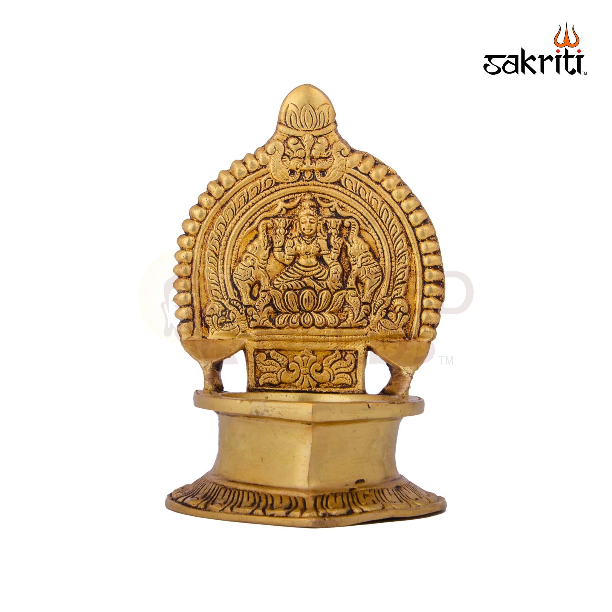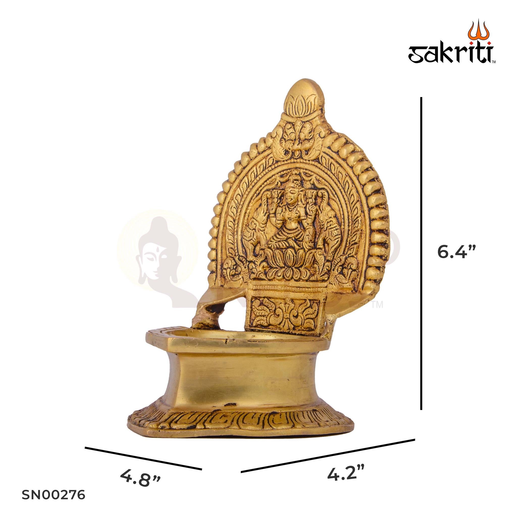 Invite prosperity and divine blessings with this Brass Lakshmi Amman Vilakku. A traditional brass oil lamp dedicated to Goddess Lakshmi, it is perfect for pooja rituals, festive celebrations, and temple use, symbolizing wealth, purity, and positivity.