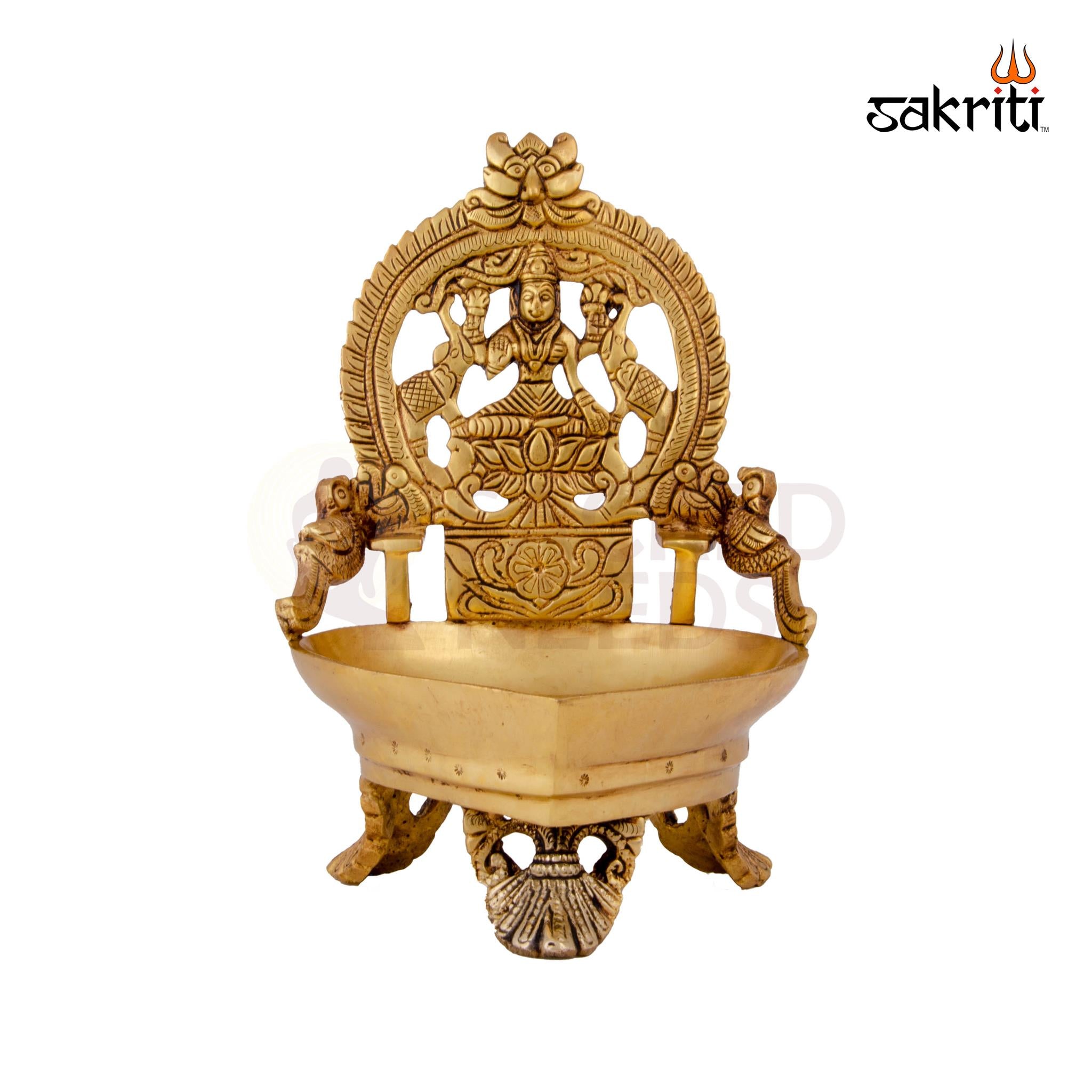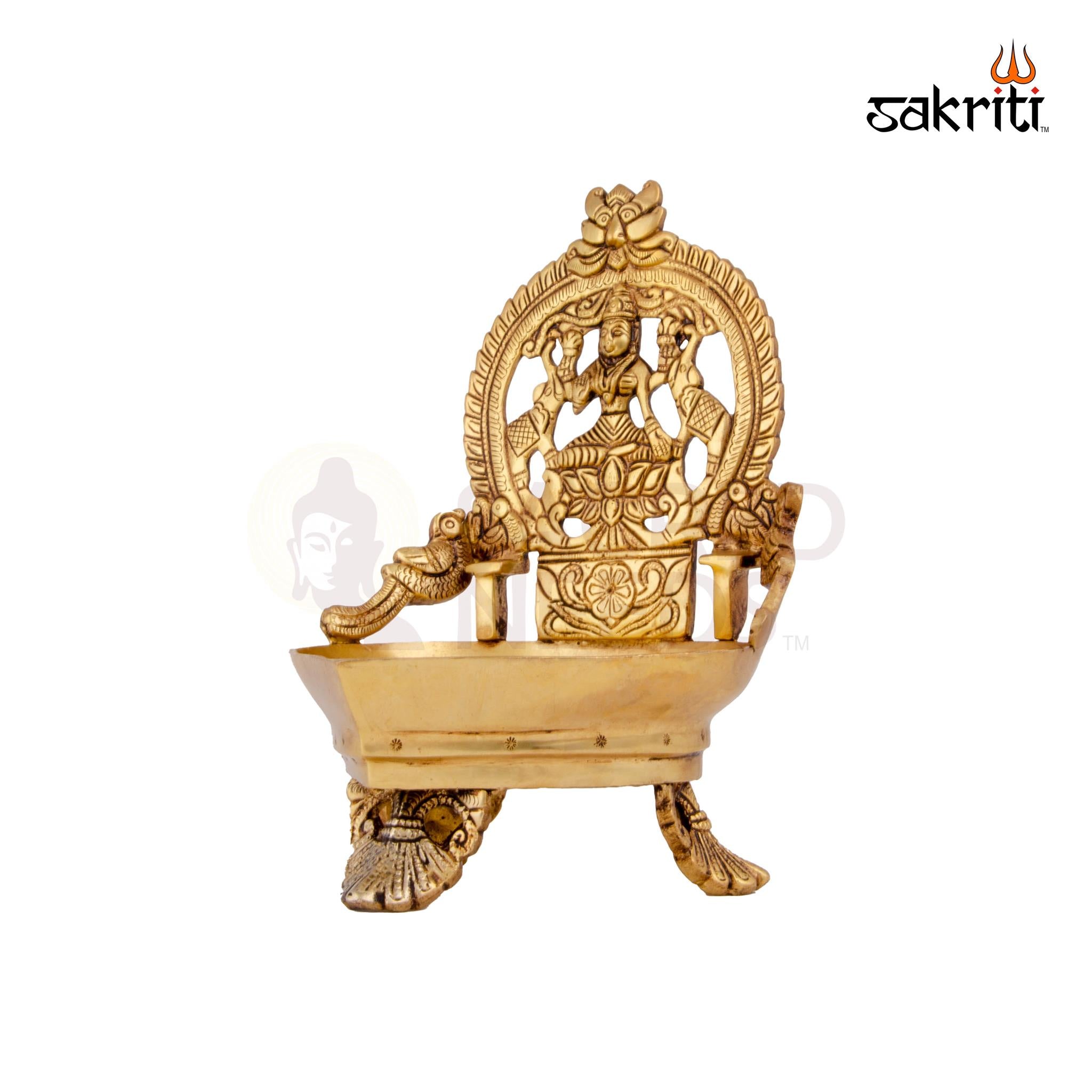 Design: Features Goddess Lakshmi seated atop traditional oil lamp (Vilakku) for auspicious pooja décor