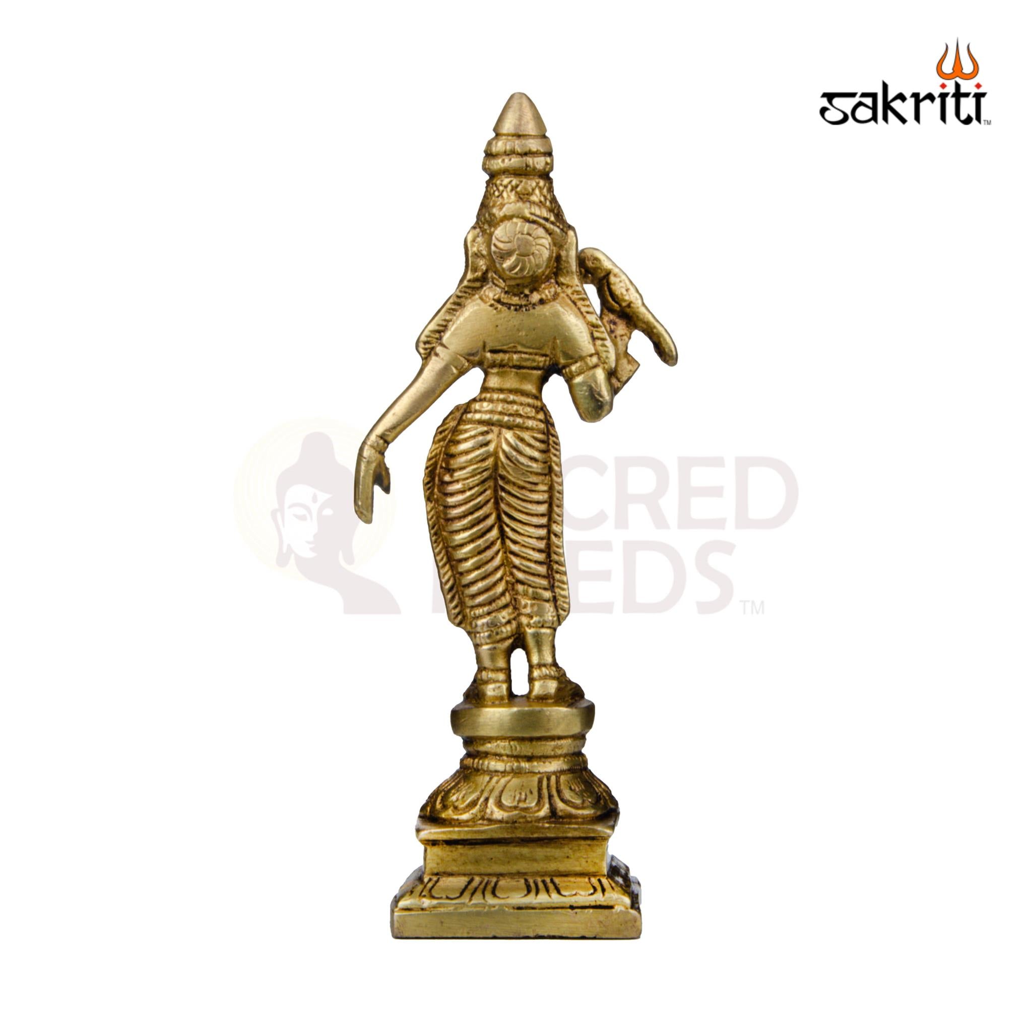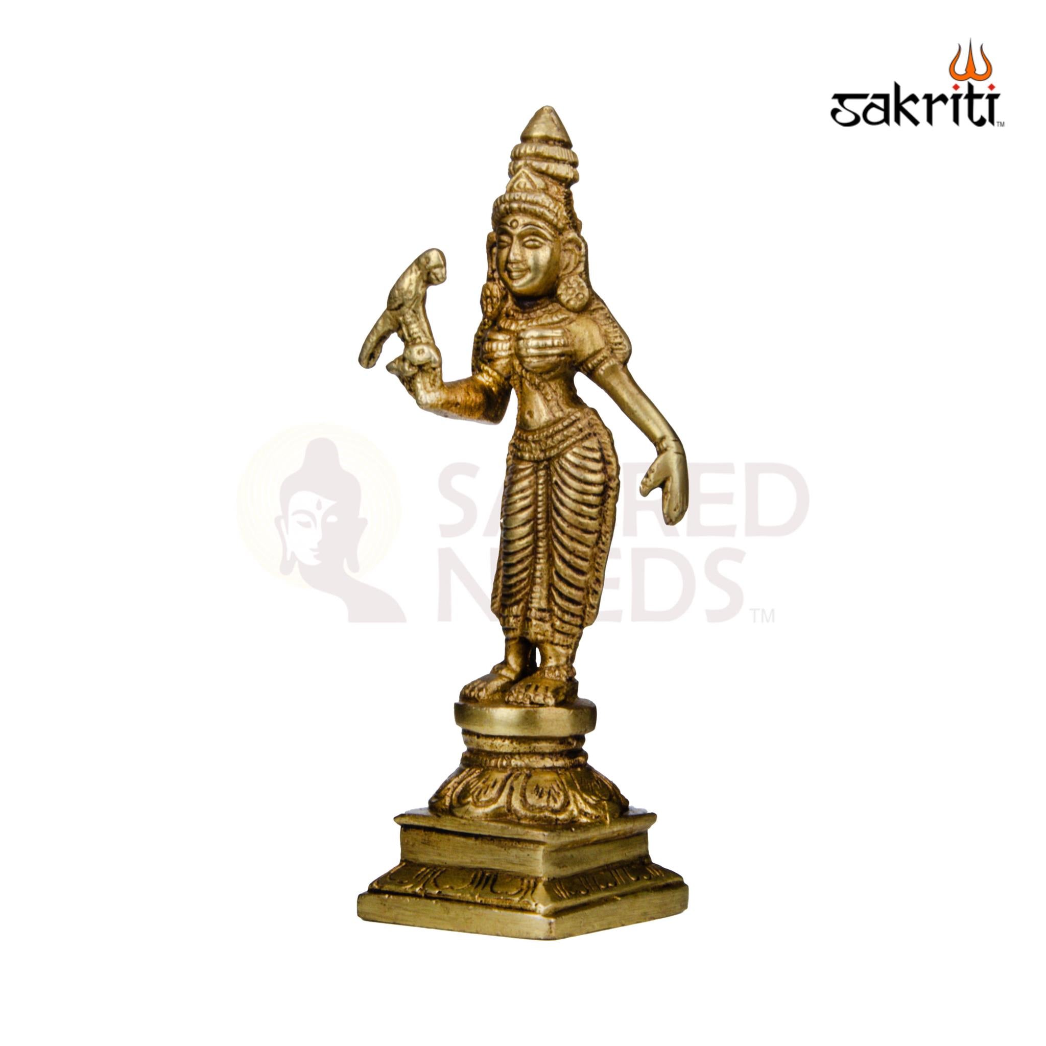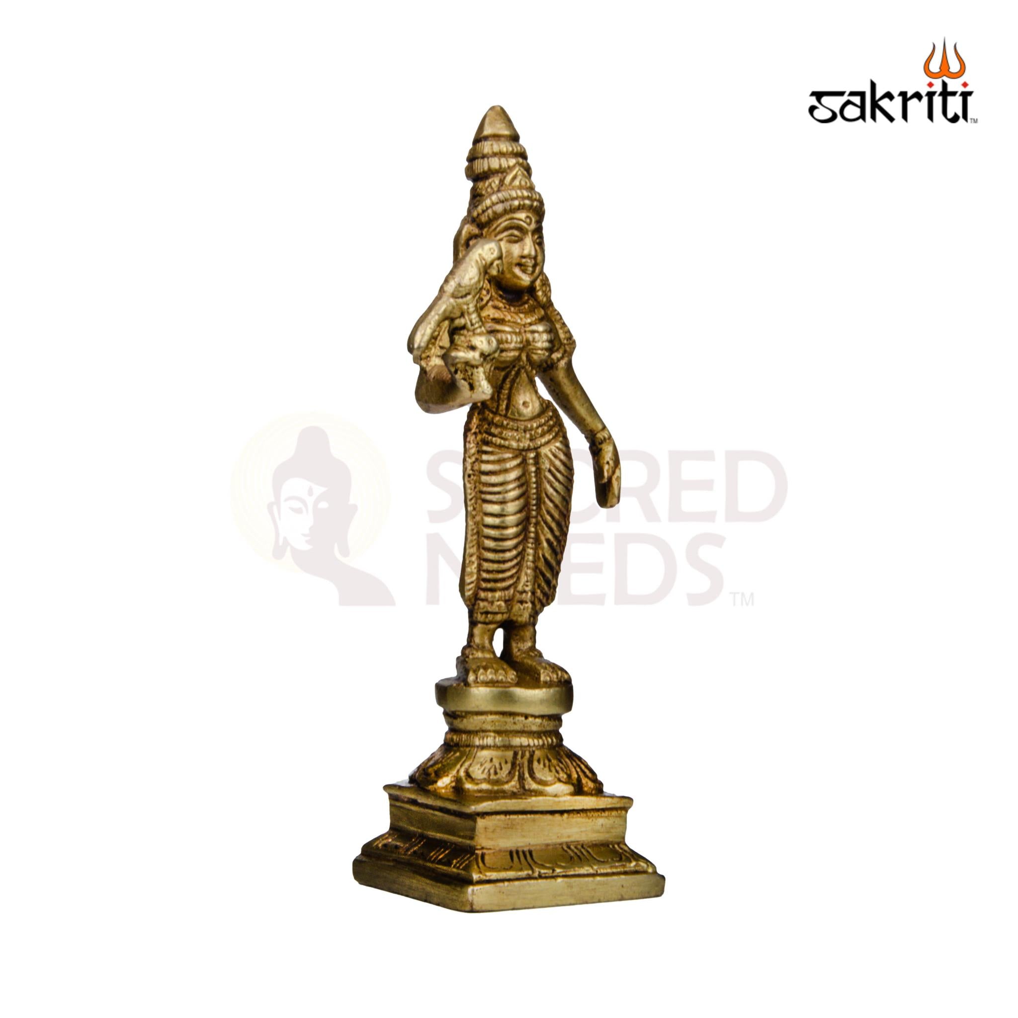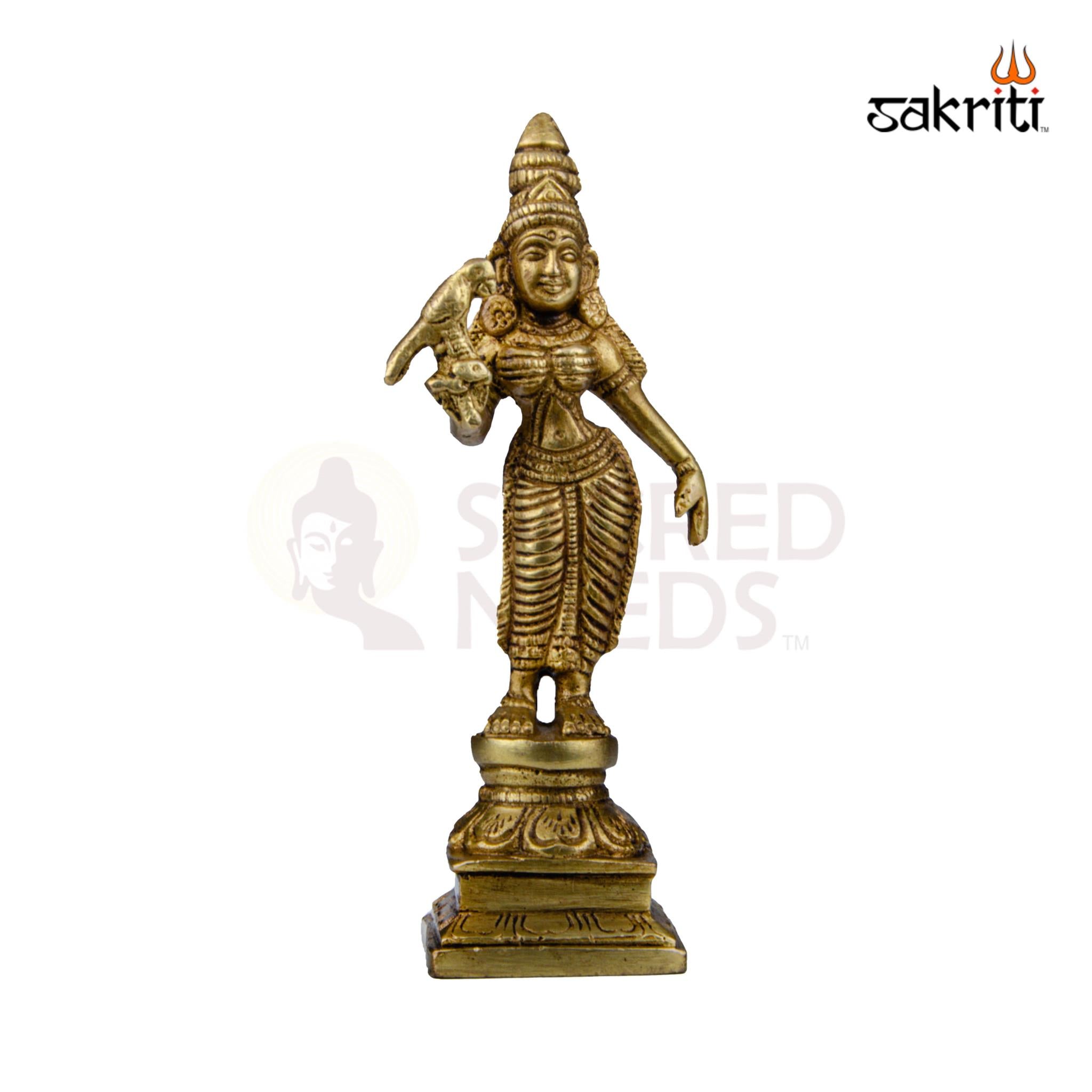 Graceful Brass Meenakshi Idol (6 Inch Height) – a beautifully crafted Goddess Meenakshi statue ideal for temple worship, home décor, and wedding gifting.