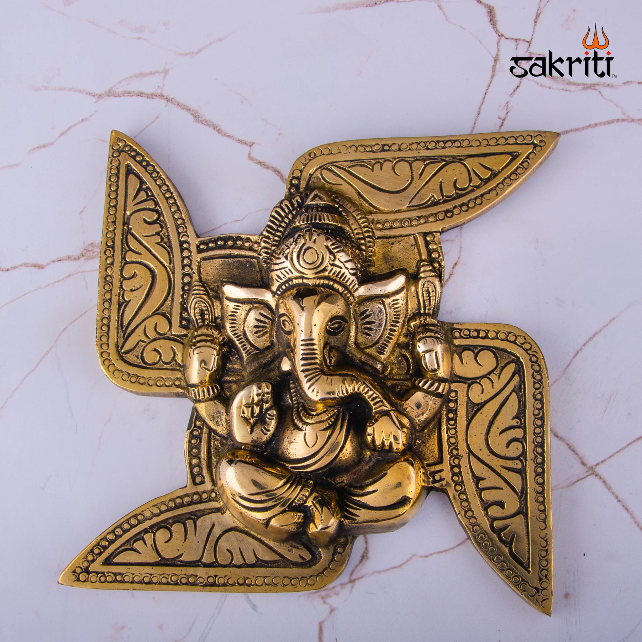 Product Name: Brass Swastik Ganesha Mounted – 6.3 Inch Height