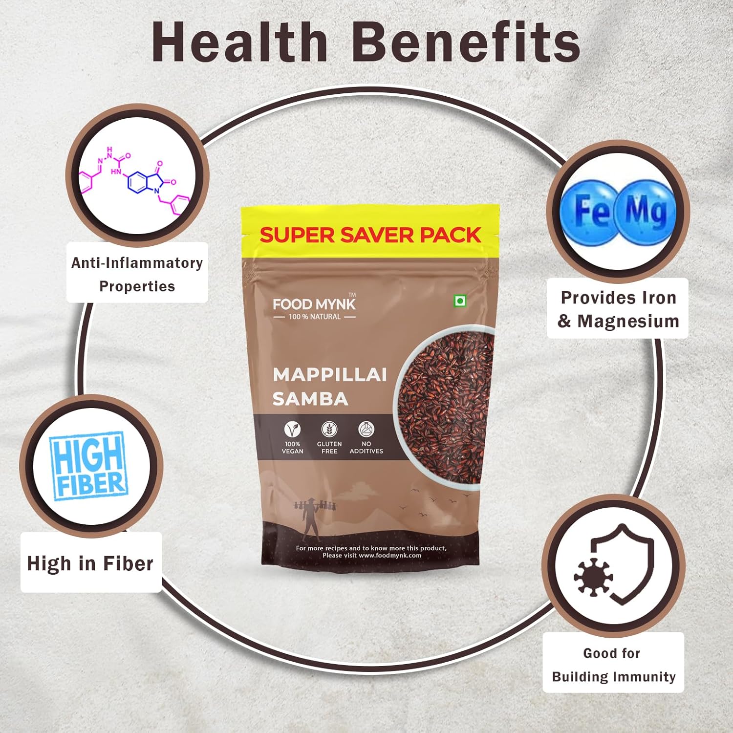 If you are searching for a nutrient-packed, heritage-rich rice variety, Food Mynk Mappillai Samba Rice (500g) is a perfect addition to your daily diet.